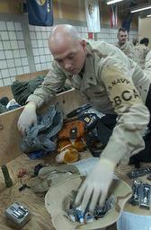 Keywords: US Navy 050301-N-6027E-001 Fire Controlman 2nd Class Jeffrey Oberts of San Diego, Calif., performs a customs inspection on a U.S. Army Soldier's duffle bag at Camp Doha, Kuwait.jpg en Camp Doha Kuwait Mar 1 2005 - Fire Controlman 2nd Class Jeffrey Oberts of San Diego Calif performs a customs inspection on a U S Army Soldier's duffle bag at Camp Doha Kuwait Petty Officer Oberts is a recalled Navy reservist assigned to Naval Expeditionary Logistics Support Force NAVELSF Forward Oscar Bravo Company Forward Oscar recently relieved the U S Air Force's 887th Expeditionary Security Forces Squadron NAVELSF is performing the customs mission for the U S Army throughout Kuwait and Iraq U S Navy photo by Chief Journalist Kevin Elliott RELEASED 2005-03-01 050301-N-6027E-001 Navy http //www navy mil/view_image asp id 22353 U S Navy photo by Chief Journalist Kevin Elliott PD-USGov-Military-Navy Camp Doha Customs services of the United States Cloth armbands Fire Controlman |
