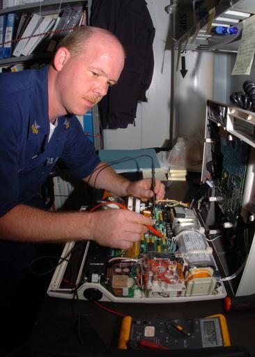 | Keywords: US Navy 050314-N-7833F-038 Hospital Corpsman 1st Class Gary Miller checks the power inputs on a defibrillator aboard the Nimitz-class aircraft carrier USS Carl Vinson (CVN 70).jpg en Pacific Ocean Mar 14 2005 - Hospital Corpsman 1st Class Gary Miller checks the power inputs on a defibrillator aboard the Nimitz-class aircraft carrier USS Carl Vinson CVN 70 Petty Officer Miller who is the only Biomedical Engineering Technician aboard Carl Vinson is responsible for the operational readiness of over 100 pieces of medical equipment The Carl Vinson Strike Group is currently on deployment in the Western Pacific USS Carl Vinson will end its deployment with a homeport shift to Norfolk Va and will conduct a three-year refuel and complex overhaul U S Navy photo by Photographer's Mate 3rd Class Adan Fabela III RELEASED 2005-03-14 050314-N-7833F-038 Navy http //www navy mil/view_image asp id 22755 U S Navy photo by Photographer's Mate 3rd Class Adan Fabela III PD-USGov-Military-Navy Aboard USS Carl Vinson CVN-70 Hospital Corpsman Defibrillators |