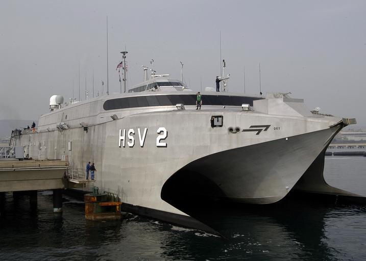 | Keywords: US Navy 050325-N-3503S-002 The High Speed Vessel Two (HSV 2) Swift maneuvers her way into a mooring spot in the port of Augusta Bay, Sicily.jpg en Augusta Bay Sicily Mar 25 2005 - The High Speed Vessel Two HSV 2 Swift maneuvers her way into a mooring spot in the port of Augusta Bay Sicily Swift is a wave-piercing aluminum-hulled catamaran that can move at speeds greater than 45 knots With a draft allowing it to navigate in only 12 feet of water it can easily maneuver in and out of littoral environments Photographer's Mate 2nd Class Brain P Smarr RELEASED 2005-03-25 050325-N-3503S-002 Navy http //www navy mil/view_image asp id 23036 U S Navy photo PD-USGov-Military-Navy Images from US Navy location Augusta Bay Sicily General views of HSV-2 Swift Ships facing right |