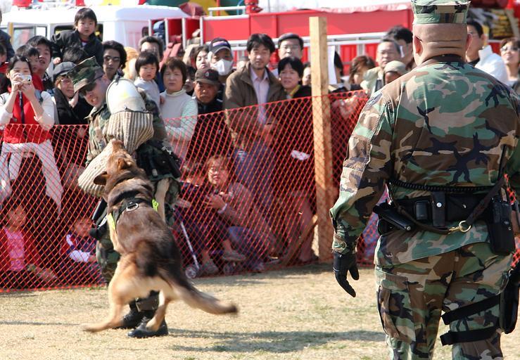 Keywords: US Navy 050326-N-1113N-007 Master-at-Arms 2nd Class Anthony Gonzales, right, watches as his partner Ben demonstrates an attack on Master-at-Arms 1st Class Dane Burgess.jpg en U S Naval Air Facility Atsugi Japan Mar 26 2005 - Master-at-Arms 2nd Class Anthony Gonzales right watches as his partner Ben demonstrates an attack on Master-at-Arms 1st Class Dane Burgess at the Naval Support Facility Kamiseya Cherry Blossom Festival In addition to a military working dog demonstration by Naval Air Facility NAF Atsugi's Security Department high schools taiko drums teams and bands performed at the annual event Thousands of people attended the festival which is meant to promote goodwill between NAF Atsugi NSF Kamiseya and the local Japanese communities The event theme is cherry blossoms which are the national flower of Japan More than 500 cherry blossom trees line the main road leading to Kamiseya U S Navy photo by Journalist 3rd Class Matthew R Schwarz RELEASED 2005-03-26 050326-N-1113N-007 Navy http //www navy mil/view_image asp id 23062 U S Navy photo by Journalist 3rd Class Matthew R Schwarz Naval Air Facility Atsugi Annual Cherry Blossom Festival Master-at-arms Military working dogs of the United States PD-USGov-Military-Navy