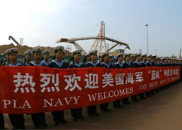 | Keywords: US Navy 050328-N-7526R-053 Members of China's People's Liberation Army (PLA) hold a banner welcoming the Sailors and Marines aboard USS Blue Ridge (LCC-19) to Zhanjiang, People's Republic of China.jpg en Zhanjiang People's Republic of China Mar 28 2005 - Members of China's People's Liberation Army PLA hold a banner welcoming the Sailors and Marines aboard USS Blue Ridge LCC-19 to Zhanjiang People's Republic of China The Sailors and Marines from the ship and embarked staff will take an opportunity to experience the local culture and interact with their counterparts from the People's Liberation Army and Navy Blue Ridge U S Seventh Fleet command ship is forward deployed to Yokosuka Japan U S Navy photo by Journalist Seaman Apprentice Marc Rockwell-Pate RELEASED 2005-03-28 050328-N-7526R-053 Navy http //www navy mil/view_image asp id 23109 U S Navy photo by Journalist Seaman Apprentice Marc Rockwell-Pate Aboard USS Blue Ridge LCC-19 Images from US Navy location Zhanjiang Peoples Republic Of China River PD-USGov-Military-Navy |