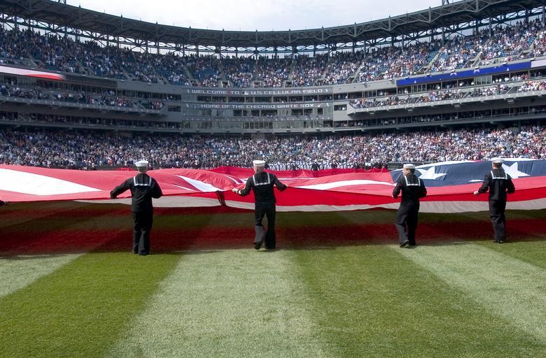 | Keywords: US Navy 050404-N-2492E-002 Naval Station Great Lakes Sailors unfurl a giant American flag at the Chicago White Sox home opener vs. the Cleveland Indians at U.S. Cellular Park in Chicago, Ill.jpg en Chicago Ill Apr 4 2005 - Naval Station Great Lakes Sailors unfurl a giant American flag at the Chicago White Sox home opener vs the Cleveland Indians at U S Cellular Park in Chicago Ill More than 120 Sailors participated in unfurling the 150' X 300' flag during pre-game ceremonies before 38 000 fans U S Navy photo by Paul Engstrom RELEASED 2005-04-04 050404-N-2492E-002 Navy http //www navy mil/view_image asp id 23450 U S Navy photo by Paul Engstrom PD-USGov-Military-Navy April 2005 in Chicago Naval officers of the United States U S Cellular Field Images from US Navy location CHICAGO Military people with a flag of the United States 2005 in Major League Baseball 2005 in sports in Chicago |