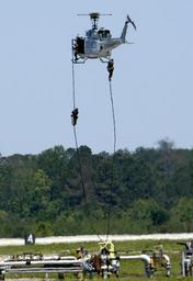 Keywords: US Navy 050507-N-0295M-005 U.S. Marines repel from a UH-1N Huey helicopter during the Marine Air Ground Task Force (MAGTF) demonstration at the 2005 Marine Corps Air Station Cherry Point air show.jpg en Cherry Point N C May 7 2005 U S Marines repel from a UH-1N Huey helicopter during the Marine Air Ground Task Force MAGTF demonstration at the 2005 Marine Corps Air Station Cherry Point air show The MAGTF demonstration highlighted various air and ground attacks used by the Marine Corps This year's air show showcased civilian and military aircraft from the Nation's armed forces which provided many flight demonstrations and static displays U S Navy photo by Photographer s Mate 2nd Class Daniel J McLain RELEASED 2005-05-07 050507-N-0295M-005 Navy http //www navy mil/view_image asp id 24225 U S Navy photo by Photographer s Mate 2nd Class Daniel J McLain PD-USGov-Military-Navy 2005 MCAS Cherry Point Air Show Bell UH-1N Twin Huey Fast roping |