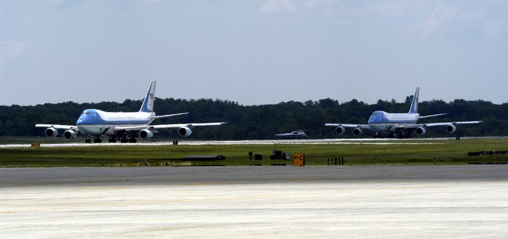 | Keywords: US Navy 050521-N-0295M-024 Air Force One and it^rsquo,s spare VC-25 aircraft, taxi to the runway prior to takeoff from Andrews Air Force Base, Md., during the 2005 Joint Service Open House.jpg en Andrews Air Force Base Md May 21 2005 Air Force One and it s spare VC-25 aircraft taxi to the runway prior to takeoff from Andrews Air Force Base Md during the 2005 Joint Service Open House President George W Bush was en route to Grand Rapids Mich to give a graduation speech to the 2005 graduations of Calvin College The 89th Presidential Airlift Group at Andrews Air Force Base is responsible for Air Force One which is housed in a 140 000-square-foot maintenance and support complex The Joint Services Open House held May 20-22 showcased civilian and military aircraft from the Nation s armed forces which provided many flight demonstrations and static displays U S Navy photo by Photographer s Mate 2nd Class Daniel J McLain RELEASED 2005-05-21 050521-N-0295M-024 Navy http //www navy mil/view_image asp id 24556 U S Navy photo by Photographer s Mate 2nd Class Daniel J McLain PD-USGov-Military-Navy Joint Base Andrews Naval Air Facility |