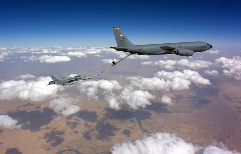 | Keywords: US Navy 050602-N-6694B-005 An F-A-18C Hornet conducts a operations over Iraq.jpg en Persian Gulf June 2 2005 An F/A-18C Hornet assigned to the Argonauts of Strike Fighter Squadron One Four Seven VFA-147 moves into position to receive fuel from an Air Force KC-135 tanker during operations over Iraq The Argonauts are attached to the Nimitz-class aircraft carrier USS Carl Vinson CVN 70 The Carl Vinson Carrier Strike Group is currently conducting operations in support of multi-national forces in Iraq and maritime security operations in order to set the conditions for security and stability in the region Vinson will end its deployment with a homeport shift to Norfolk Va and commence a three-year refuel and complex overhaul U S Navy photo by Cmdr Don Berry RELEASED 2005-06-02 050602-N-6694B-005 Navy http //www navy mil/view_image asp id 25044 U S Navy photo by Cmdr Don Berry PD-USGov-Military-Navy Aerial refueling of F/A-18C Hornet Boeing KC-135 Stratotanker Strike Fighter Squadron 147 United States Navy |