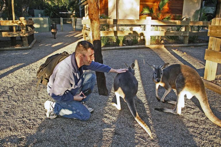 Keywords: US Navy 050704-N-6009S-002 Engineman 1st Class Kevin Kesler, pats kangaroos living at the Featherdale Zoo while on a USS Kitty Hawk (CV 63) Morale, Welfare and Recreation (MWR) tour.jpg en Sydney Australia July 4 2005 - Engineman 1st Class Kevin Kesler pats kangaroos living at the Featherdale Zoo while on a USS Kitty Hawk CV 63 Morale Welfare and Recreation MWR tour The conventionally-powered Kitty Hawk embarked Carrier Air Wing Five CVW-5 and the guided missile cruiser USS Cowpens CG 63 arrived for a five-day port in Australia while conducting its summer cruise in the 7th Fleet area of responsibility AOR Kitty Hawk demonstrates power projection and sea control as the U S Navy's only permanently forward-deployed aircraft carrier operating from Yokosuka Japan U S Navy photo by Photographer's Mate 1st Class Hana'lei Shimana RELEASED 2005-07-04 050704-N-6009S-002 Navy http //www navy mil/view_image asp id 26041 U S Navy photo by Photographer's Mate 1st Class Hana'lei Shimana PD-USGov-Military-Navy Images from US Navy location Sydney Australia Aboard USS Cowpens CG-63 Engineman United States Navy Unidentified Macropus |