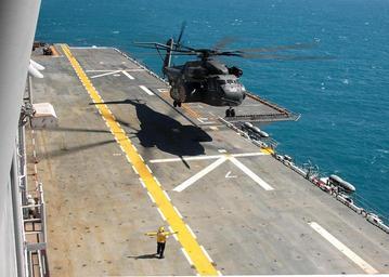 Keywords: US Navy 050715-N-0050M-001 An MH-53E Sea Dragon helicopter lands on the flight deck aboard the amphibious assault ship USS Saipan (LHA 2).jpg en Coast of Albania July 15 2005 - An MH-53E Sea Dragon helicopter assigned to the Black Stallions of Helicopter Combat Support Squadron Four HC-4 lands on the flight deck aboard the amphibious assault ship USS Saipan LHA 2 during Exercise Adriatic Engagement 2005 The helicopter was performing touch and go landings aboard Saipan in order for HC-4 and the ship to meet all qualification standards to maintain deployment readiness Exercise Adriatic Engagement 2005 is focused on developing the individual and collective combat proficiencies of participating nations as well as promoting friendship mutual understand and cooperation with NATO and regional allies Nearly 1 500 Navy and Marine Corps personnel are participant in this year s exercise U S Navy photo by Photographer's Mate 1st Class Kimberly E McDonald RELEASED 2005-07-15 050715-N-0050M-001 Navy http //www navy mil/view_image asp id 26257 U S Navy photo by Photographer's Mate 1st Class Kimberly E McDonald PD-USGov-Military-Navy Images from US Navy location Coast of Albania Adriatic Engagement 2005 Sikorsky MH-53E Sea Dragon in flight Helicopter Combat Support Squadron 4 United States Navy |