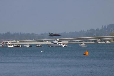 Keywords: US Navy 050806-N-3390M-017 he lead solo pilot assigned to the U.S. Navy flight demonstration team, the Blue Angels, conducts a high-speed, low level pass over Lake Washington.jpg en Seattle Aug 6 2005 The lead solo pilot assigned to the U S Navy flight demonstration team the Blue Angels conducts a high-speed low level pass over Lake Washington during Seattle Seafair events in Seattle Wash The Blue Angels fly the F/A-18A Hornet performing approximately 30 maneuvers during the aerial demonstration lasting over an hour Seafair is Seattle's month-long traditional summer festival which includes parades amateur athletics air shows and boat racing U S Navy photo by Photographer's Mate 3rd Class Douglas G Morrison RELEASED 2005-08-06 050806-N-3390M-017 Navy http //www navy mil/view_image asp id 26986 U S Navy photo by Photographer's Mate 3rd Class Douglas G Morrison PD-USGov-Military-Navy Aircraft low altitude flight Blue Angels F/A-18 Hornets at Seafair 2005 Interstate 90 Lake Washington bridges |