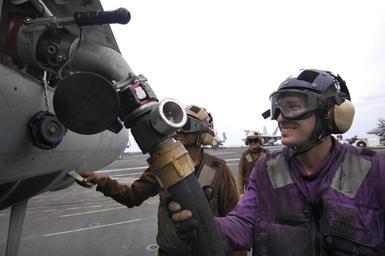 Keywords: US Navy 050807-N-8604L-059 Airman James Burr of Walls, Miss., refuels a F-A-18E Super Hornet.jpg en Pacific Ocean Aug 7 2005 - Airman James Burr of Walls Miss refuels a F/A-18E Super Hornet assigned to the Royal Maces of Strike Fighter Squadron Two Seven VFA-27 during flight operations aboard the conventionally powered aircraft carrier USS Kitty Hawk CV 63 The Kitty Hawk Carrier Strike Group and the amphibious assault ship USS Boxer LHD 4 are participating in the third annual Joint Air and Sea Exercise JASEX with the U S Air Force and U S Marine Corps in the western Pacific JASEX focuses on integrated joint training proficiency in detecting locating tracking and engaging units at sea in the air and on land in response to a range of mission areas U S Navy photo by Photographer's Mate Airman Joshua Wayne LeGrand RELEASED 2005-08-07 050807-N-8604L-059 Navy http //www navy mil/view_image asp id 26963 U S Navy photo by Photographer's Mate Airman Joshua Wayne LeGrand PD-USGov-Military-Navy Aboard USS Boxer LHD-4 Strike Fighter Squadron 27 United States Navy |