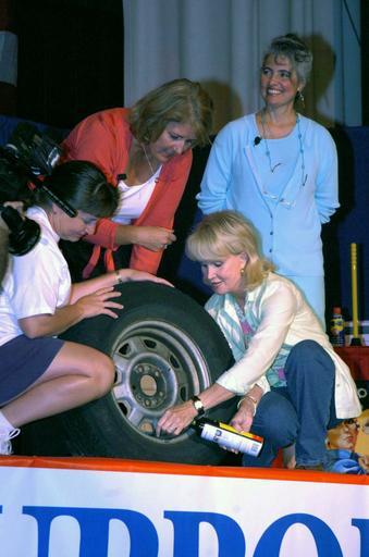Keywords: US Navy 050820-N-3441D-006 Julie Sussman and Stephanie Glakas-Tenet, authors of the Dare to Repair.jpg en Norfolk Va Aug 20 2005 - Julie Sussman and Stephanie Glakas-Tenet authors of the Dare to Repair A Do-It Herself Guide to Fixing Almost Anything in the Home and Dare to Repair Your Car A Do-It herself Guide to Maintenance Safety and Minor Fix-Its and Talking Shop show a military dependent how to make an emergency repair on a flat tire during a presentation on board Naval Station Norfolk U S Navy photo by Journalist 3rd Class Maja Dyson RELEASED 2005-08-20 050820-N-3441D-006 Navy http //www navy mil/view_image asp id 27366 U S Navy photo by Journalist 3rd Class Maja Dyson PD-USGov-Military-Navy Naval Station Norfolk