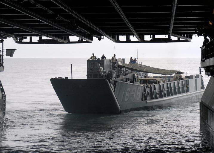 Keywords: US Navy 050831-N-1467R-024 A Landing Craft, Utility (LCU) assigned Assault Craft Unit Two (ACU-2), departs the well deck of the amphibious assault ship USS Bataan (LHD 5) bound for New Orleans.jpg en Gulf of Mexico Aug 31 2005 - A Landing Craft Utility LCU assigned Assault Craft Unit Two ACU-2 departs the well deck of the amphibious assault ship USS Bataan LHD 5 bound for New Orleans The LCU is loaded with sandbags water a small flat bottom boat 300 lifejackets a High Mobility Multipurpose Wheeled Vehicle HMMWV and enough supplies to last ten days as part of the relief efforts after Hurricane Katrina hit the Southern Gulf Coast States Bataan's involvement in the humanitarian assistance operations led by the Federal Emergency Management Agency FEMA in conjunction with the Department of Defense Bataan has been tasked to be the Maritime Disaster Relief Coordinator for the Navy's role in the relief efforts U S Navy photo by Photographer's Mate Airman Pedro A Rodriguez RELEASED 2005-08-31 050831-N-1467R-024 Navy http //www navy mil/view_image asp id 27539 U S Navy photo by Photographer's Mate Airman Pedro A Rodriguez PD-USGov-Military-Navy Aboard USS Bataan LHD-5 LCU 1656 ship 1970 Well decks |