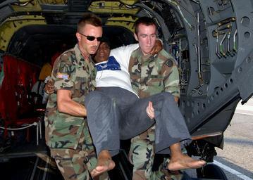 Keywords: US Navy 050903-N-5526M-002 U.S. Army Spec. Trauth and Spec. Hanks, both assigned to the Army National Guard, carry-off a Hurricane Katrina victim from an Army CH-47 Chinook helicopter during relief efforts in New Orleans.jpg en New Orleans Sept 3 2005 U S Army Spec Trauth and Spec Hanks both assigned to the Army National Guard carry-off a Hurricane Katrina victim from an Army CH-47 Chinook helicopter during relief efforts in New Orleans The Army National Guard have been mobilized to take part in Joint Task Force Katrina a humanitarian assistance operation in a joint effort led by the Federal Emergency Management Agency FEMA in conjunction with the Department of Defense U S Navy photo by Photographer's Mate 1st Class Robert McRill RELEASED 2005-09-03 050903-N-5526M-002 Navy http //www navy mil/view_image asp id 27722 U S Navy photo by Photographer's Mate 1st Class Robert McRill PD-USGov-Military-Navy Hurricane Katrina aftermath in New Orleans CH-47 Chinook interiors Chair carry Photographs by Robert R McRill |