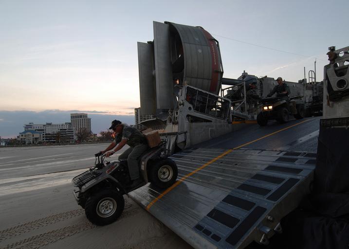 | Keywords: US Navy 050906-N-4374S-014 Riding all-terrain vehicles, law enforcement personnel from the Wildlife, Fisheries, and Parks of Mississippi, disembark from a U.S. Navy Landing Craft, Air Cushion (LCAC) to conduct search and rescue.jpg en Biloxi Miss Sept 6 2005 Riding all-terrain vehicles law enforcement personnel from the Wildlife Fisheries and Parks of Mississippi disembark from a U S Navy Landing Craft Air Cushion LCAC to conduct search and rescue missions in support of Hurricane Katrina relief efforts The Navy s involvement in the Hurricane Katrina humanitarian assistance operations is led by the Federal Emergency Management Agency FEMA in conjunction with the Department of Defense U S Navy photo by Photographer's Mate 2nd Class Michael Sandberg RELEASED 2005-09-06 050906-N-4374S-014 Navy http //www navy mil/view_image asp id 27869 U S Navy photo by Photographer's Mate 2nd Class Michael Sandberg PD-USGov-Military-Navy Images from US Navy location BILOXI Miss Hurricane Katrina aftermath in Biloxi Landing Craft Air Cushion |
