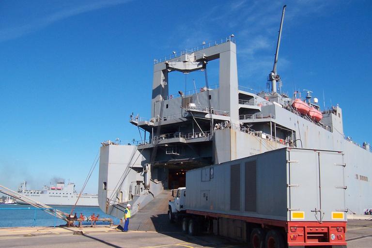 Keywords: US Navy 050909-N-1111M-001 A diesel generator is loaded aboard the Military Sealift Command (MSC) large, medium-speed, roll-on-roll-off ship USNS Red Cloud (T-AKR 313) in Rota.jpg en Rota Spain Sept 9 2005 A diesel generator is loaded aboard the Military Sealift Command MSC large medium-speed roll-on/roll-off ship USNS Red Cloud T-AKR 313 in Rota for transport to the United States The generator will be used to power a Gulf-region hospital damaged by Hurricane Katrina Red Cloud will be transporting nine generators and one 30-ton crane which will be turned over to the states of Louisiana and Alabama The U S Navy's involvement in the humanitarian assistance operations are being led by the Federal Emergency Management Agency FEMA in conjunction with the Department of Defense U S Navy photo by Mr Scott Merry RELEASED 2005-09-09 050909-N-1111M-001 Navy http //www navy mil/view_image asp id 28381 U S Navy photo by Mr Scott Merry PD-USGov-Military-Navy Ships at Naval Station Rota USNS Red Cloud T-AKR-313 |