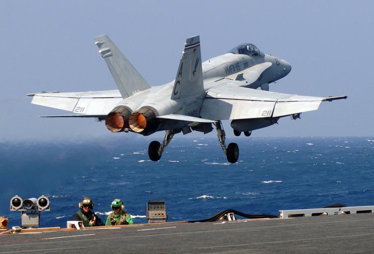 | Keywords: US Navy 051015-N-5345W-051 An F-A-18A- Hornet, assigned to the Silver Eagles of Marine Fighter Attack Squadron One One Five (VMFA-115), launches during flight operations.jpg en Atlantic Ocean Oct 15 2005 An F/A-18A+ Hornet assigned to the Silver Eagles of Marine Fighter Attack Squadron One One Five VMFA-115 launches during flight operations aboard the Nimitz-class aircraft carrier USS Harry S Truman CVN 75 Truman is currently conducting carrier qualifications and sustainment training with embarked Carrier Air Wing Three CVW-3 off the East Coast of the United States U S Navy photo by Photographer's Mate 3rd Class Kristopher Wilson RELEASED 2005-10-15 051015-N-5345W-051 Navy http //www navy mil/view_image asp id 29045 U S Navy photo by Photographer's Mate 3rd Class Kristopher Wilson PD-USGov-Military-Navy F/A-18A Hornet in flight Aboard USS Harry S Truman CVN-75 F/A-18 Hornet aircraft carrier launches |