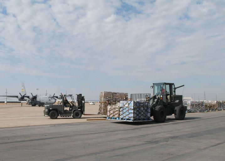 Keywords: US Navy 051027-N-4615G-066 U.S. Military personnel use forklifts to stage pallets of relief supplies on board Naval Air Station Joint Reserve Base (NAS JRB) Fort Worth.jpg en Fort Worth Texas Oct 27 2005 U S Military personnel use forklifts to stage pallets of relief supplies on board Naval Air Station Joint Reserve Base NAS JRB Fort Worth NAS JRB Fort Worth has become the staging area for Region Six Federal Emergency Management Agency FEMA Hurricane Wilma relief supplies heading to Florida Approximately 250 000 pounds of FEMA supplies have already been offloaded from trucks and more than a million more pounds are expected to be delivered The Navy's involvement in Hurricane Wilma humanitarian assistance operations are led by the Federal Emergency Management Agency FEMA in conjunction with the Department of Defense U S Navy photo by Photographer s Mate 3rd Class Margarito Garcia RELEASED 2005-10-27 051027-N-4615G-066 Navy http //www navy mil/view_image asp id 29386 U S Navy photo by Photographer s Mate 3rd Class Margarito Garcia PD-USGov-Military-Navy Naval Air Station Fort Worth John Deere 544E October 2005 in the United States Hurricane Wilma |
