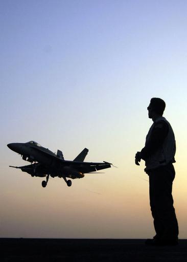 Keywords: US Navy 051128-N-9389D-071 A landing signal officer (LSO) observes an F-A-18C Hornet as it prepares to land on the flight deck.jpg en Pacific Ocean Nov 28 2005 - A landing signal officer LSO observes an F/A-18C Hornet assigned to the Dambusters of Strike Fighter Squadron One Nine Five VFA-195 as it prepares to land on the flight deck during evening cyclic flight operations aboard the conventionally powered aircraft carrier USS Kitty Hawk CV 63 The LSO's primary responsibility is the safe and expeditious recovery of fixed-wing aircraft aboard ship Kitty Hawk and embarked Carrier Air Wing Five CVW-5 are currently conducting operations in the Western Pacific Ocean U S Navy photo by Photographer's Mate Airman Benjamin Dennis RELEASED 2005-11-28 051128-N-9389D-071 Navy http //www navy mil/view_image asp id 30257 U S Navy photo by Photographer's Mate Airman Benjamin Dennis PD-USGov-Military-Navy Aboard USS Kitty Hawk CV-63 F/A-18C Hornet in flight Silhouette views of aircraft Aircraft at sunset Silhouettes of men F/A-18 Hornet aircraft carrier landings Photographs by Benjamin Dennis People with sunsets Strike Fighter Squadron 195 United States Navy