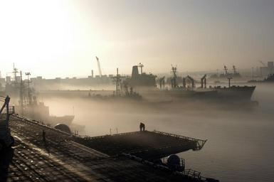 | Keywords: US Navy 060112-N-8154G-014 Crew members assigned to the amphibious assault ship USS Bataan (LHD 5) observe a foggy sunrise as the ship departs from her homeport at Naval Station Norfolk.jpg en Norfolk Va Jan 12 2006 Crew members assigned to the amphibious assault ship USS Bataan LHD 5 observe a foggy sunrise as the ship departs from her homeport at Naval Station Norfolk Bataan is getting underway to conduct routine operations off the Atlantic Coast U S Navy photo by Photographers Mate 3rd Class Jeremy L Grisham RELEASED 2006-01-12 060112-N-8154G-014 Navy http //www navy mil/view_image asp id 31173 U S Navy photo by Photographers Mate 3rd Class Jeremy L Grisham PD-USGov-Military-Navy Naval Station Norfolk Aboard USS Bataan LHD-5 |