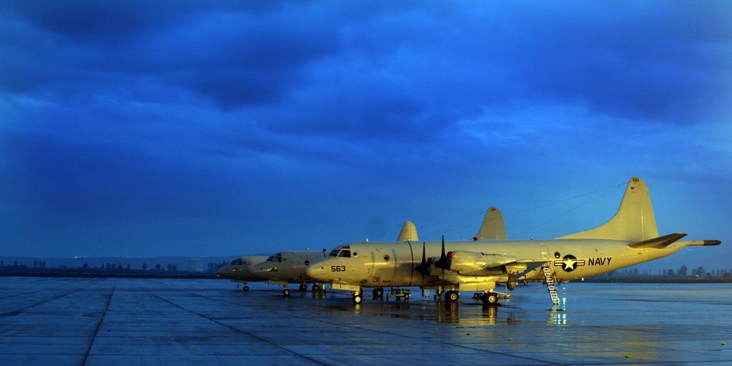 | Keywords: US Navy 060115-N-8726C-001 Three P-3C Orion aircraft belonging to the Tridents of Patrol Squadron Two Six (VP-26) stand ready on a rain soaked airfield on board Naval Air Station Sigonella.jpg en Sigonella Sicily Jan 15 2006 - Three P-3C Orion aircraft belonging to the Tridents of Patrol Squadron Two Six VP-26 stand ready on a rain soaked airfield on board Naval Air Station Sigonella Originally designed as a land-based long-range anti-submarine warfare ASW patrol aircraft the P-3C's mission has evolved in the late 1990s and early 21st century to include surveillance of the battlespace either at sea or over land VP-26 is currently on a six-month deployment supporting maritime patrol operations and the Global War on Terror U S Navy photo by Photographer s Mate 1st Class John Collins RELEASED 2006-01-15 060115-N-8726C-001 Navy http //www navy mil/view_image asp id 31248 U S Navy photo by Photographer s Mate 1st Class John Collins PD-USGov-Military-Navy P-3C Orion Patrol Squadron 26 United States Navy Naval Air Station Sigonella |
