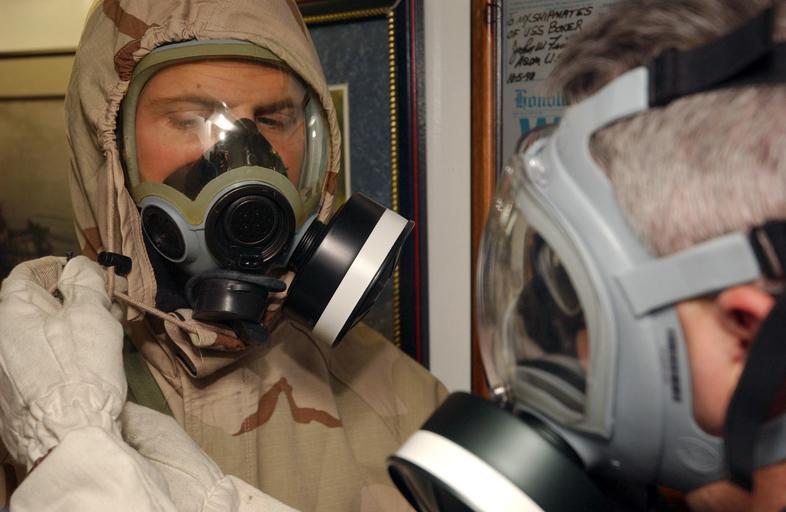 Keywords: US Navy 060116-N-0212M-001 Hull Technician 3rd Class Steven Colburn, stationed aboard the amphibious-assault ship USS Boxer (LHD 4) has his Chemical, Biological and Radiological (CBR) suit adjusted during a general quarters dri.jpg en Pacific Ocean Jan 16 2006 Hull Technician 3rd Class Steven Colburn stationed aboard the amphibious-assault ship USS Boxer LHD 4 has his Chemical Biological and Radiological CBR suit adjusted during a general quarters drill GQ Boxer is currently operating off of the California coast conducting shipboard training and flight deck qualifications U S Navy photo by Journalist 1st Class Michael Miller RELEASED 2006-01-16 060116-N-0212M-001 Navy http //www navy mil/view_image asp id 31906 U S Navy photo by Journalist 1st Class Michael Miller PD-USGov-Military-Navy Aboard USS Boxer LHD-4 Military protective clothing Males wearing gas masks MCU-2/P Protective Mask |