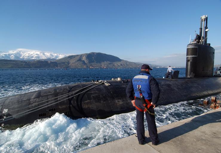 Keywords: US Navy 060216-N-0780F-002 The Los Angeles-class fast attack submarine USS Annapolis (SSN 760) prepares to depart the pier following a routine port visit. Annapolis is assigned to Commander Submarine Group Two, homeported in Gr.jpg en Souda Bay Crete Greece Feb 16 2006 - The Los Angeles-class fast attack submarine USS Annapolis SSN 760 prepares to depart the pier following a routine port visit Annapolis is assigned to Commander Submarine Group Two homeported in Groton Connecticut Annapolis is currently on a regularly scheduled deployment in support of the Global War on Terrorism U S Navy photo by Mr Paul Farley RELEASED 2006-02-16 060216-N-0780F-002 Navy http //www navy mil/view_image asp id 32044 U S Navy photo by Mr Paul Farley PD-USGov-Military-Navy Souda Bay USS Annapolis SSN-760 Submarines in Chania Military people in Chania 2006 in Chania 0216 February 2006 in Greece 16