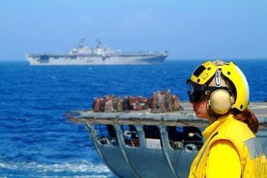 Keywords: US Navy 060225-N-4772B-099 Landing Signal Enlisted (LSE), Gunner's Mate 3rd Class Nikole Povolish prepares for the next helicopter to reach the flight deck aboard the dock landing ship USS Harpers Ferry (LSD 49).jpg en Philippine Sea Feb 25 2006 - Landing Signal Enlisted LSE Gunner's Mate 3rd Class Nikole Povolish prepares for the next helicopter to reach the flight deck aboard the dock landing ship USS Harpers Ferry LSD 49 Harpers Ferry is conducting a replenishment at sea with the Military Sealift Command MSC fleet replenishment oiler USNS Yukon T-AO 202 while the amphibious assault ship USS Essex navigates off the port side Sailors and Marines from the Forward Deployed Amphibious Ready Group ARG USS Harpers Ferry LSD 49 and USS Essex LHD 2 arrived off the coast of Leyte Feb 19 to provide humanitarian assistance and disaster relief to victims of the Feb 17 landslide on the island of Leyte Republic of the Philippines U S Navy photo by Journalist 2nd Class Brian P Biller RELEASED 2006-02-25 060225-N-4772B-099 Navy http //www navy mil/view_image asp id 32262 U S Navy photo by Journalist 2nd Class Brian P Biller PD-USGov-Military-Navy Vertical replenishment General views of USS Essex LHD-2 Aboard USS Harpers Ferry LSD-49 |