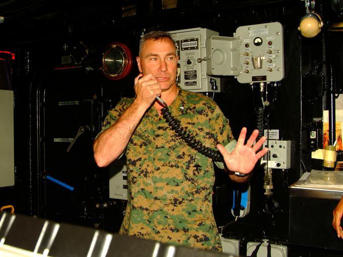 | Keywords: US Navy 060225-N-4772B-139 Commanding General, 3rd Marine Division, Commander, Joint Task Force Balikatan 2006, U.S. Marine Brig. Gen. Mastin M. Robeson.jpg en Philippine Sea Feb 25 2006 - Commanding General 3rd Marine Division Commander Joint Task Force Balikatan 2006 U S Marine Brig Gen Mastin M Robeson addresses Sailors and Marines from the bridge of the dock landing ship USS Harpers Ferry LSD 49 General Robeson addressed the crew and thanked them for the great job they did while supporting recovery efforts following the Feb 17th landslide on Leyte island Republic of the Philippines Sailors and Marines from the Forward Deployed Amphibious Ready Group ARG USS Essex LHD 2 and USS Harpers Ferry LSD 49 arrived off the coast of Leyte Feb 19 to provide humanitarian assistance and disaster relief U S Navy photo by Journalist 2nd Class Brian P Biller RELEASED 2006-02-25 060225-N-4772B-139 Navy http //www navy mil/view_image asp id 32265 U S Navy photo by Journalist 2nd Class Brian P Biller PD-USGov-Military-Navy Balikatan 2006 Aboard USS Harpers Ferry LSD-49 Mastin M Robeson |