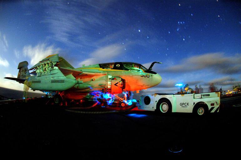 Keywords: US Navy 060316-N-6213R-001 Pilots sit in an EA-6B Prowler assigned the Vikings of Tactical Electronic Warfare Squadron One Two Nine (VAQ-129), while flight deck crew members prepare their aircraft for night flight operations.jpg en Pacific Ocean March 16 2006 - Pilots sit in an EA-6B Prowler assigned the Vikings of Tactical Electronic Warfare Squadron One Two Nine VAQ-129 while flight deck crew members prepare their aircraft for night flight operations aboard the Nimitz-class aircraft carrier USS John C Stennis CVN 74 Stennis is currently conducting carrier qualifications off the coast of Southern California U S Navy photo by Photographer's Mate 2nd Class Mark J Rebilas RELEASED 2006-03-16 060316-N-6213R-001 Navy http //www navy mil/view_image asp id 32912 U S Navy photo by Photographer's Mate 2nd Class Mark J Rebilas PD-USGov-Military-Navy Grumman EA-6 Prowler Aboard USS John C Stennis CVN-74 Long exposure photography Military activities at night Photographs by Mark J Rebilas |