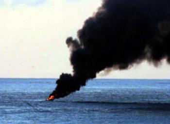 | Keywords: US Navy 060318-N-8623S-003 A suspected pirate vessel ignites in flames before burning to the waterline.jpg  en Indian Ocean March 18 2006 - A suspected pirate vessel ignites in flames before burning to the waterline USS Gonzalez DDG 66 and USS Cape St George CG 71 were conducting maritime security operations in international waters off the coast of Somalia and attempted to perform a routine boarding of the suspicious vessel towing two skiffs The suspected pirates opened fire on the U S Navy ships and the ship's crew members returned fire One suspect was killed and 12 were taken into custody Coalition forces conduct maritime security operations to ensure security and safety in international waters so legitimate mariners can operate freely while transiting the region U S Navy photo RELEASED 2006-03-18 060318-N-8623S-003 Navy http //www navy mil/view_image asp id 32854 U S Navy photo PD-USGov-Military-Navy USS Cape St George CG-71 Burning ships Piracy in Somalia |