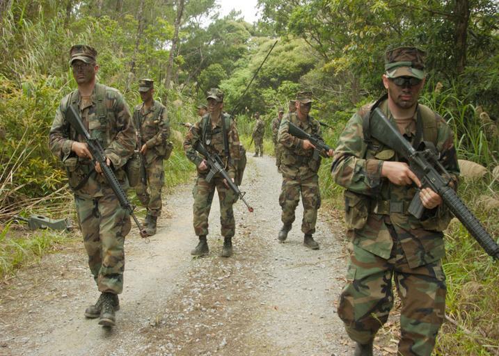 | Keywords: US Navy 060404-N-3560G-007 Seabees assigned to Naval Mobile Construction Battalion Four (NMCB-4) execute security patrol maneuvers.jpg en Okinawa Japan April 4 2006 - Seabees assigned to Naval Mobile Construction Battalion Four NMCB-4 execute security patrol maneuvers during a field exercise in Okinawa s central area NMCB-4 is onboard Camp Shields in Okinawa for a scheduled six-month Pacific deployment U S Navy photo by Photographer s Mate 3rd Class Ronald Gutridge RELEASED 2006-04-04 060404-N-3560G-007 Navy http //www navy mil/view_image asp id 33495 U S Navy photo by Photographer s Mate 3rd Class Ronald Gutridge PD-USGov-Military-Navy ImageNote 1 1502 407 593 746 2100 1500 2 m16 ImageNoteEnd 1 Naval Mobile Construction Battalion 4 M16 rifle with blank-firing adaptor Images from US Navy location Okinawa Japan |