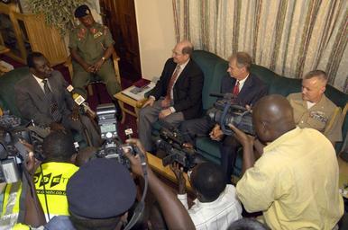 Keywords: US Navy 060418-N-2568S-004 Secretary of the Navy (SECNAV) the Honorable Dr. Donald C. Winter meets with Ghana's Minister of Defense, the Honorable Kwame Addo Kufuor.jpg en Accra Ghana April 18 2006 - Secretary of the Navy SECNAV the Honorable Dr Donald C Winter meets with Ghana's Minister of Defense the Honorable Kwame Addo Kufuor Also in the meeting were Charge d'Affairs Jerry Lanier and Defense Attache Marine Lt Col Thom Bruce SECNAV is in Africa to see first-hand the work being done by the Sailors and Marines deployed to the region U S Navy photo by Chief Journalist Craig P Strawser RELEASED 2006-04-18 060418-N-2568S-004 Navy http //www navy mil/view_image asp id 33695 U S Navy photo by Chief Journalist Craig P Strawser PD-USGov-Military-Navy United States Navy in Ghana 2006 United States Navy in Accra Donald C Winter Politicians of Ghana Military people of Ghana Military attachés from the United States |