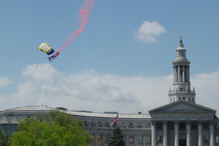 Keywords: US Navy 060506-N-0772H-002 Navy File Photo.jpg en Denver May 6 2006 - A U S Navy Parachute Demonstration Team RThe Leap Frogs S crew member descend into Civic Park near City Hall during Denver Navy Week and Cinco de Mayo festivities Navy Week Denver is one of 20 such weeks are planned this year in cities throughout the U S arranged by the Navy Office of Community Outreach NAVCO U S Navy photo by Personnel Specialist 1st Class Michael Hernandez RELEASED 2006-05-06 060506-N-0772H-002 Navy http //www navy mil/view_image asp id 34218 U S Navy photo by Personnel Specialist 1st Class Michael Hernandez PD-USGov-Military-Navy Images from US Navy location Denver Personnel Specialist United States Navy United States Navy Parachute Team Denver Navy Week |