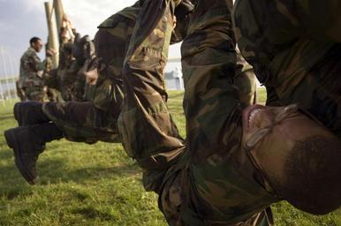 Keywords: US Navy 060516-N-6967M-757 Struggling to hold onto a rope for 30 seconds, U.S. Naval Academy Class of 2009 participate in this year's Sea Trials.jpg en Annapolis Md May 16 2006 - Struggling to hold onto a rope for 30 seconds U S Naval Academy Class of 2009 participate in this year's Sea Trials Modeled after the Marine Corps' 54-hour Crucible and Navy's Battle Stations freshmen split into different groups to persevere in the grueling five phases of the 11 5 hour event Evolutions included challenges in an aquatic environment combat conditioning teamwork and unit cohesion land/water obstacles endurance challenges and obstacle course U S Navy photo by Photographer's Mate 1st Class Shane T McCoy RELEASED 2006-05-16 060516-N-6967M-757 Navy http //www navy mil/view_image asp id 34623 U S Navy photo by Photographer's Mate 1st Class Shane T McCoy PD-USGov-Military-Navy Sea Trials Obstacle courses Photographs by Shane T McCoy |