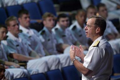 | Keywords: US Navy 060517-N-2383B-201 Chief of Naval Operations (CNO) Adm. Mike Mullen speaks to the graduating class of Midshipmen at the U.S. Naval Academy's Alumni Hall.jpg en Annapolis Md May 17 2006 - Chief of Naval Operations CNO Adm Mike Mullen speaks to the graduating class of Midshipmen at the U S Naval Academy's Alumni Hall Besides instruction and practice in military drill all midshipmen receive more than 2 000 hours of education and training in physical fitness leadership seamanship navigation and other elements of naval service U S Navy photo by Chief Photographer's Mate Johnny Bivera RELEASED 2006-05-17 060517-N-2383B-201 Navy http //www navy mil/view_image asp id 34653 U S Navy photo by Chief Photographer's Mate Johnny Bivera PD-USGov-Military-Navy Michael G Mullen in 2006 United States Naval Academy |