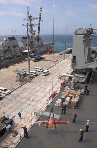 Keywords: US Navy 060519-N-9851B-001 An aerial target drone (BQM-74E) is lowered by crane on to the deck of the dock landing ship USS Tortuga (LSD 46).jpg en Okinawa Japan May 19 2006 - An aerial target drone BQM-74E is lowered by crane on to the deck of the dock landing ship USS Tortuga LSD 46 Tortuga is currently in port at Commander Fleet Activities Okinawa while supporting Southeast Asia Cooperation Against Terrorism SEACAT exercises SEACAT is a scenario-based exercise where the Navies of various Southeast Asian Nations operate with the U S Navy in tracking and boarding simulated rogue merchant ships U S Navy photo by Photographer's Mate 2nd Class John L Beeman RELEASED 2006-05-19 060519-N-9851B-001 Navy http //www navy mil/view_image asp id 34683 U S Navy photo by Photographer's Mate 2nd Class John L Beeman PD-USGov-Military-Navy Aboard USS Tortuga LSD-46 BQM-74 Chukar Southeast Asia Cooperation Against Terrorism 2006 |