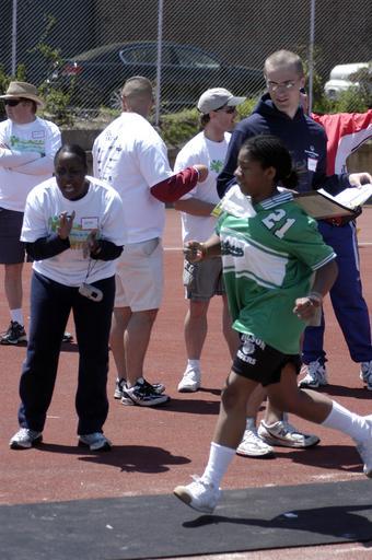 | Keywords: US Navy 060523-N-5608F-002 Personnel Specialist 2nd Class Chanetta Williamson, left, assigned to Personnel Support Detachment Anacostia and Seaman Cameron Kisselbaugh, right, assigned to the Anacostia Navy Ceremonial Guard Uni.jpg en Washington D C May 23 2006 - Personnel Specialist 2nd Class Chanetta Williamson left assigned to Personnel Support Detachment Anacostia and Seaman Cameron Kisselbaugh right assigned to the Anacostia Navy Ceremonial Guard Unit encourage a Special Olympics athlete as she competes in the running long jump The 2006 Washington D C chapter Summer Special Olympics kicked of on May 23rd at Howard University Special Olympics are an international nonprofit organization dedicated to empowering individuals with intellectual disabilities to become physically fit productive and respected members of society through sports training and competition U S Navy photo by Journalist 1st Class Kristin Fitzsimmons RELEASED 2006-05-23 060523-N-5608F-002 Navy http //www navy mil/view_image asp id 34833 U S Navy photo by Journalist 1st Class Kristin Fitzsimmons PD-USGov-Military-Navy Athletics in Washington D C Special Olympics Personnel Specialist United States Navy |