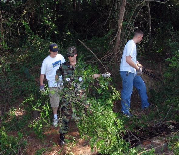 Keywords: US Navy 060525-N-5324B-002 11 volunteers helping the Little Rock Parks and Recreation Department clear heavy brush at Connor Park in preparation for repairs to the levee of a 4 acre lake.jpg en Little Rock Ark May 25 2006 - Trevor Jenkins in the Navy Delayed Entry Program in North Little Rock Ark Cadet Major Nathan Jones assigned to Air Force Junior ROTC program in Cabot Ark and Engineman 1st Class Dan Little assigned to Navy Recruiting Detachment Nashville were among 11 volunteers helping the Little Rock Parks and Recreation Department clear heavy brush at Connor Park in preparation for repairs to the levee of a 4 acre lake A breach in the levee caused water to flow alongside the heavily traveled Highway 10 Volunteers located the breach and cleared workspace for the Parks Department during Navy Week Little Rock U S Navy photo by Journalist 1st Class Barbra L Bailey RELEASED 2006-05-25 060525-N-5324B-002 Navy http //www navy mil/view_image asp id 35223 U S Navy photo PD-USGov-Military-Navy Images from US Navy location Little Rock Arkansas Little Rock Navy Week |