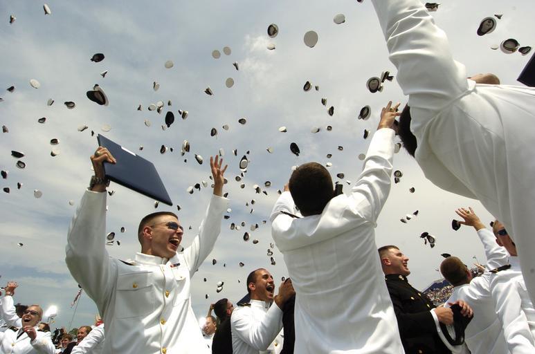 Keywords: US Navy 060526-N-3642E-001 2006 U.S. Naval Academy Graduation and Commissioning Ceremony.jpg en Annapolis Md May 26 2006 - Ens Justin Thibault left a newly commissioned U S Naval Officer celebrates his new position by throwing his Midshipmen cover into the air as part of the U S Naval Academy class of 2006 Graduation and Commissioning Ceremony at Annapolis Md The hat toss now a traditional ending to the ceremony originated at the Naval Academy in 1912 This hat toss has since become a symbolic and visual end to the four-year program Nine hundred-eighty Midshipmen graduated from the U S Naval Academy and became commissioned officers in the U S Military Vice President Dick Cheney delivered the commencement address and personally greeted each graduate during the ceremony The men and women of the graduating class were sworn into the U S Navy as Ensigns or into the Marine Corps as Second Lieutenants U S Navy photo by Photographer s Mate 1st Class Shawn P Eklund RELEASED 2006-05-26 060526-N-3642E-001 Navy http //www navy mil/view_image asp id 35085 U S Navy photo PD-USGov-Military-Navy Hat tossing Graduation and Commissioning Ceremony May 26 2006 Photos taken with Nikon D2H |