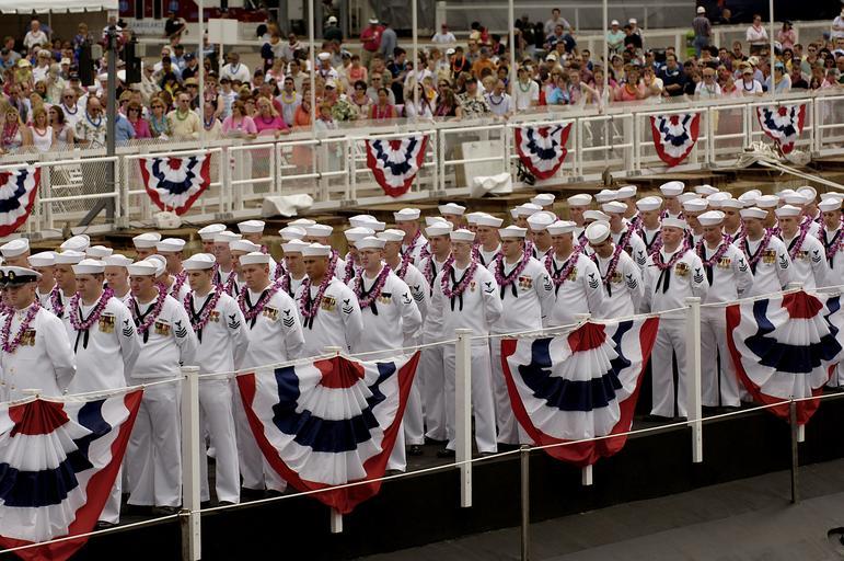 Keywords: US Navy 060617-N-3642E-002 Sailors assigned to the Virginia-class nuclear attack submarine Pre-Commissioning Unit (PCU) Hawaii (SSN 776) stand at ease during the ship's christening ceremony.jpg en Groton Conn Jun 17 2006 - Sailors assigned to the Virginia-class nuclear attack submarine Pre-Commissioning Unit PCU Hawaii SSN 776 stand at ease during the ship's christening ceremony Hawaii is the third Virginia-class submarine to be christened and the 1st major U S Navy combatant vessel class designed with the post-Cold War security environment in mind and embodies the war fighting and operational capabilities required to dominate the littorals while maintaining undersea dominance in the open ocean U S Navy photo by Photographer's Mate 1st Class Shawn P Eklund RELEASED 2006-06-17 060617-N-3642E-002 Navy http //www navy mil/view_image asp id 35913 U S Navy photo by Photographer's Mate 1st Class Shawn P Eklund PD-USGov-Military-Navy Naval Submarine Base New London Ship christenings in the United States Navy USS Hawaii SSN-776 |