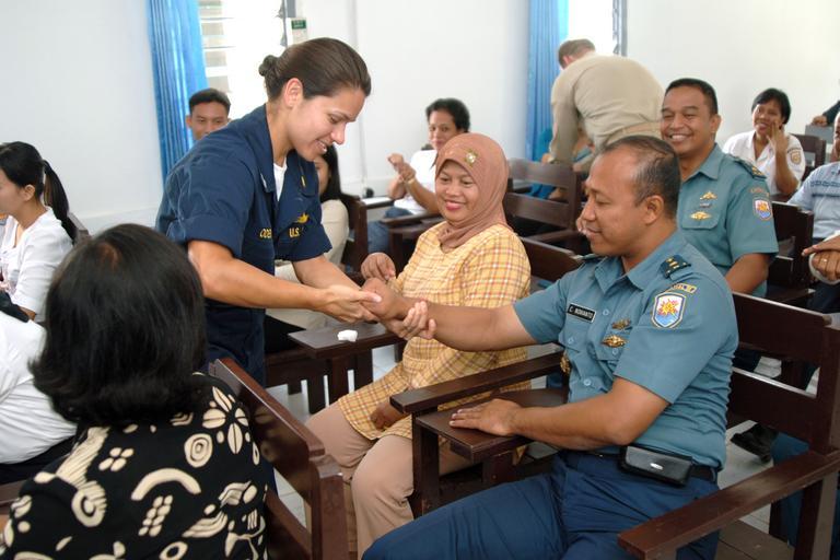 | Keywords: US Navy 060812-N-6501M-017 Navy Lt. Marcella Oden, a physical therapist aboard the Military Sealift Command (MSC) hospital ship USNS Mercy (T-AH 19), gives a lecture on the diagnosis and treatment.jpg en Tarakan Indonesia Aug 12 2006 - Navy Lt Marcella Oden a physical therapist aboard the Military Sealift Command MSC hospital ship USNS Mercy T-AH 19 gives a lecture on the diagnosis and treatment of hand and wrist injuries to the medical staff at the Tarakan Military Hospital Mercy is currently off the coast to provide humanitarian and civic assistance to the people of this small island Mercy is in the fourth month of her five-month humanitarian and civic assistance deployment to South and Southeast Asia where her crew has already treated thousands of people U S Navy photo by Chief Mass Communication Specialist Edward G Martens RELEASED 2006-08-12 060812-N-6501M-017 Navy http //www navy mil/view_image asp id 38005 U S Navy photo by Chief Mass Communication Specialist Edward G Martens PD-USGov-Military-Navy Images from US Navy location Tarakan Indonesia diagnosis |