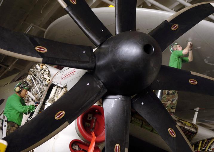 | Keywords: US Navy 060905-N-9742R-120 Aviation Machinist's Mate 1st Class Zamir Alvarez (left), of Miami, Fla., removes a thermal couple panel from an E-2C Hawkeye.jpg en Arabian Sea Sept 5 2006 - Aviation Machinist's Mate 1st Class Zamir Alvarez left of Miami Fla removes a thermal couple panel from an E-2C Hawkeye assigned to the Screwtops of Carrier Airborne Early Warning Squadron One Two Three VAW-123 as Aviation Structural Mechanic 3rd Class Joe Brandt of Salisbury Center N Y replaces sealant for panels on the radar rotodome aboard the nuclear-powered aircraft carrier USS Enterprise CVN 65 Enterprise Carrier Strike Group and embarked Carrier Air Wing One CVW-1 are currently on a scheduled six-month deployment in support of global war on terrorism U S Navy photo by Mass Communication Specialist 2nd Class Milosz Reterski RELEASED 2006-09-05 060905-N-9742R-120 Navy http //www navy mil/view_image asp id 38895 U S Navy photo by Mass Communication Specialist 2nd Class Milosz Reterski PD-USGov-Military-Navy Aboard USS Enterprise CVN-65 Aircraft propellers E-2C Hawkeye Airborne Early Warning Squadron 123 United States Navy |