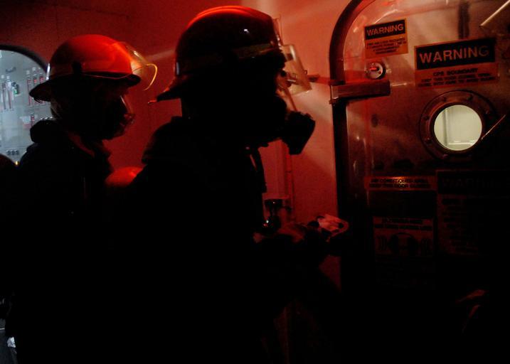 | Keywords: US Navy 061110-N-0684R-017 Sailor's look through the spy glass of a watertight door for signs of a fire during engineering drills aboard the guided missile destroyer USS Preble (DDG 88).jpg en Pacific Ocean Nov 10 2006 - Sailor's look through the spy glass of a watertight door for signs of a fire during engineering drills aboard the guided missile destroyer USS Preble DDG 88 Preble is currently participating in Joint Task Force Exercise JTFEX as part of the John C Stennis Strike Group JCSSG pre-deployment training cycle U S Navy photo by Mass Communication Specialist 3rd Class Ron Reeves RELEASED 2006-11-10 061110-N-0684R-017 Navy http //www navy mil/view_image asp id 40747 U S Navy photo by Mass Communication Specialist 3rd Class Ron Reeves PD-USGov-Military-Navy Aboard USS Preble DDG-88 Watertight doors |