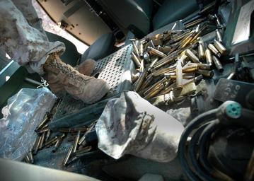 Keywords: US Navy 061203-N-1328C-201 Empty 50 cal. rounds tumble into a humvee, during a 5th Provisional Security Company 50 cal. qualification shot.jpg en Arta Djibouti Dec 2 2006 - Empty 50 cal rounds tumble into a humvee during a 5th Provisional Security Company 50 cal qualification shot The 5th PSC is the security force for Camp Lemonier in Djibouti home of the Combine Joint Task Force-Horn of Africa command U S Navy photo by Chief Mass Communication Specialist Eric A Clement RELEASED 2006-12-02 061203-N-1328C-201 Navy http //www navy mil/view_image asp id 41644 U S Navy photo PD-USGov-Military-Navy Images from US Navy location Arta Djibouti Cartridge cases Taken with Nikon D100 |