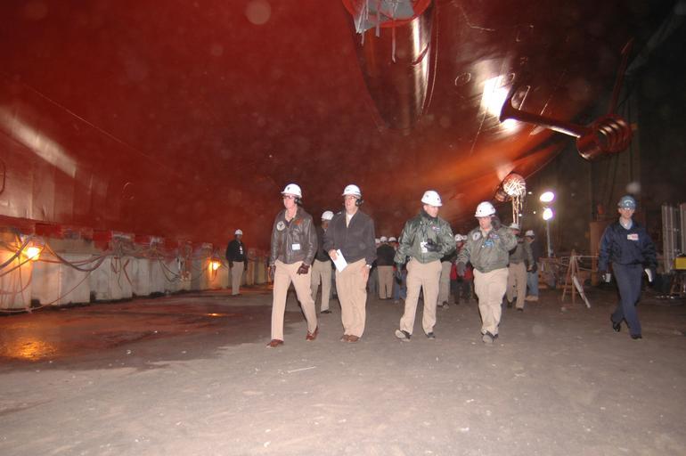 Keywords: US Navy 061208-N-5951A-026 USS Carl Vinson (CVN 70) Commanding Officer Capt. Walter E. Carter Jr. (far left in foreground) walks with Rear Adm. David Architzel (2nd from left), Program Executive Officer for Aircraft Carriers.jpg en Newport News Va Dec 8 2006 - USS Carl Vinson CVN 70 Commanding Officer Capt Walter E Carter Jr far left in foreground walks with Rear Adm David Architzel 2nd from left Program Executive Officer for Aircraft Carriers in the dry dock area at Northrop Grumman Newport News Shipyard as part of a tour to brief the ship's Quarterly Progress Report QPR USS Carl Vinson is currently undergoing its scheduled refueling complex overhaul RCOH at Northrop Grumman Newport News shipyard The RCOH is an extensive yard period that all Nimitz-class aircraft carriers go through near the mid-point of their 50-year life cycle U S Navy photo by Mass Communication Specialist 2nd Class Tekeshia Affa RELEASED 2006-12-08 061208-N-5951A-026 Navy http //www navy mil/view_image asp id 41482 U S Navy photo by Mass Communication Specialist 2nd Class Tekeshia Affa PD-USGov-Military-Navy Newport News Shipbuilding Aboard USS Carl Vinson CVN-70 Ships in drydocks Walter E Carter Jr David Architzel |