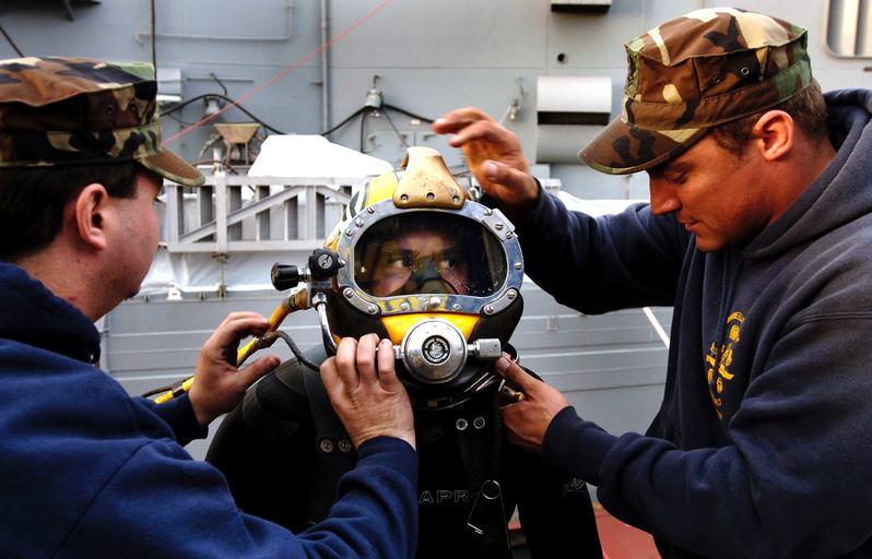 Keywords: US Navy 070104-N-9769P-024 Working directly with Southwest Regional Maintenance Center (SWRMC) divers, Senior Chief Mass Communication Specialist (diver) Andrew McKaskle is fitted with the MK-21 diving helmet before documenting.jpg en San Diego Jan 4 2007 - Working directly with Southwest Regional Maintenance Center SWRMC divers Senior Chief Mass Communication Specialist diver Andrew McKaskle is fitted with the MK-21 diving helmet before documenting a 13-ton fin stabilizer replacement aboard the Oliver Hazard Perry-class frigate USS McCluskey FFG 41 U S Navy photo by Mass Communication Specialist 2nd Class Jayme Pastoric RELEASED 2007-01-04 070104-N-9769P-024 Navy http //www navy mil/view_image asp id 42190 U S Navy photo by Mass Communication Specialist 2nd Class Jayme Pastoric PD-USGov-Military-Navy Naval Base San Diego in the 2000s USS McClusky FFG-41 MK-21 diving helmet Mass Communication Specialist |