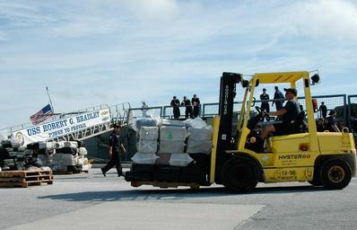 Keywords: US Navy 070105-N-5240C-018 Boatswain's Mate 1st Class David Malcolm of Naval Air Station (NAS) Key West use a forklift to transport a pallet of cocaine onto a waiting truck at the pier at NAS Key West.jpg en Key West Fla Jan 5 2007 - Boatswain's Mate 1st Class David Malcolm of Naval Air Station NAS Key West use a forklift to transport a pallet of cocaine onto a waiting truck at the pier at NAS Key West Sailors assigned to the guided missile frigate USS Robert G Bradley FFG 49 Coast Guardsmen and agents from the Drug Enforcement Agency unloaded the cocaine off the ship after a recent drug seizure Bradley was part of a multi-national and interagency effort to interdict the flow of narcotics into the United States U S Navy photo by Mass Communication Specialist 2nd Class Timothy Cox RELEASED 2007-01-05 070105-N-5240C-018 Navy http //www navy mil/view_image asp id 42067 U S Navy photo by Mass Communication Specialist 2nd Class Timothy Cox PD-USGov-Military-Navy Naval Air Station Key West USS Robert G Bradley FFG-49 |