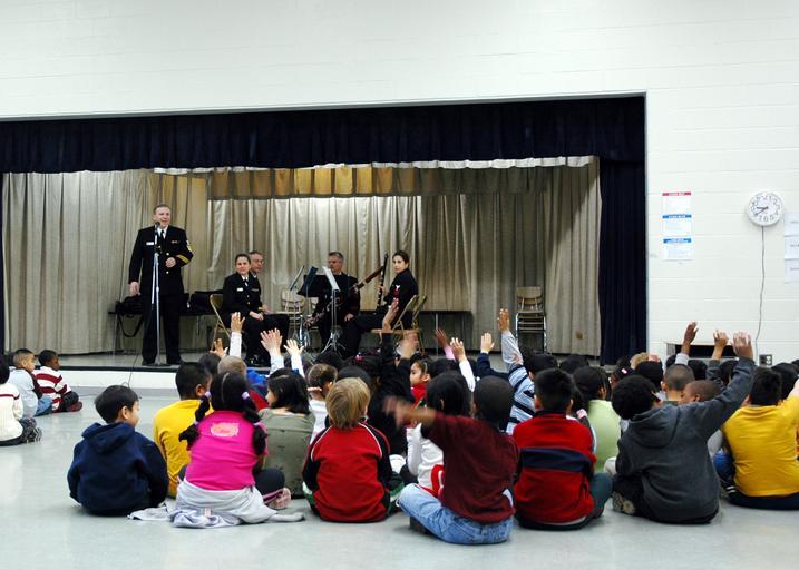 Keywords: US Navy 070129-N-6822G-017 The Navy Band's program has brought concerts and demonstrations to schools in the Washington, D.C., area since 1991.jpg en Silver Spring Md Jan 29 2007 - Chief Musician Eric D Moore answers questions about his French horn from elementary school students at New Hampshire Estates Elementary As a member of the 'Windjammers' woodwind quintet Chief Moore participated in the Music in the Schools program sponsored by the Navy Band The Navy Band's program has brought concerts and demonstrations to schools in the Washington D C area since 1991 These presentations are designed to complement music curricula in area schools U S Navy photo by Musician 1st Class Adam Grimm RELEASED 2007-01-29 070129-N-6822G-017 Navy http //www navy mil/view_image asp id 42670 U S Navy photo by Musician 1st Class Adam Grimm PD-USGov-Military-Navy Images from US Navy location Silver Spring Md |