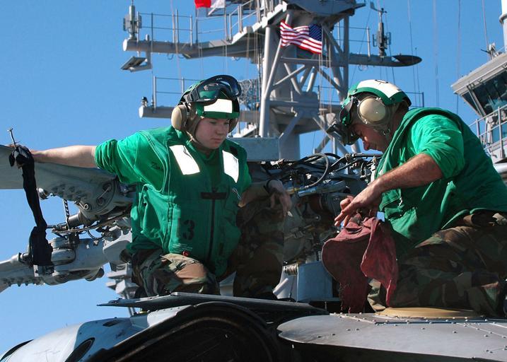 Keywords: US Navy 070216-N-5822P-028 The multi-purpose amphibious assault ship and Expeditionary Strike Group Five are currently off the coast of Southern California participating in Composite Training Unit Exercise (COMPTUEX) in prepara.jpg en Pacific Ocean Feb 16 2007 - Aviation Structural Mechanic Airman Charlotte Zimmerman from Manchester Pa left and Aviation Machinist's Mate 1st Class Vincent E Negrini from Arcadin Calif perform preflight maintenance checks on a SH-60S Seahawk helicopter aboard USS Bonhomme Richard LHD 6 The multi-purpose amphibious assault ship and Expeditionary Strike Group Five are currently off the coast of Southern California participating in Composite Training Unit Exercise COMPTUEX in preparation for an upcoming deployment U S Navy photo by Mass Communication Specialist Seaman Mark Patterson II RELEASED 2007-02-16 070216-N-5822P-028 Navy http //www navy mil/view_image asp id 43301 U S Navy photo by Mass Communication Specialist Seaman Mark Patterson II PD-USGov-Military-Navy Aboard USS Bonhomme Richard LHD-6 |