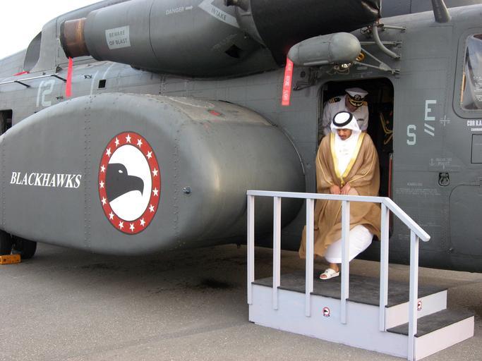 Keywords: US Navy 070219-N-0000O-002 Sheikh Sultan bin Tahnoon Al Nahyan, chairman of Abu Dhabi Tourism Authority and Abu Dhabi National Exhibitions Company, tours an MH-53 Sea Dragon helicopter from Helicopter Mine Countermeasures Squad.jpg en ABU DHABI United Arab Emirates Feb 19 2007 - Sheikh Sultan bin Tahnoon Al Nahyan chairman of Abu Dhabi Tourism Authority and Abu Dhabi National Exhibitions Company tours an MH-53 Sea Dragon helicopter from Helicopter Mine Countermeasures Squadron HM 15 during International Developmental Exchange IDEX 2007 Two U S Navy mine countermeasure vessels both forward-deployed to Bahrain and the helicopter participated in the international defense exhibition U S Navy photo RELEASED 2007-02-19 070219-N-0000O-002 Navy http //www navy mil/view_image asp id 43422 U S Navy photo PD-USGov-Military-Navy Images from US Navy location ABU DHABI United Arab Emirates MH-53E Sea Dragon IDEX Helicopter Mine Countermeasures Squadron 15 United States Navy |