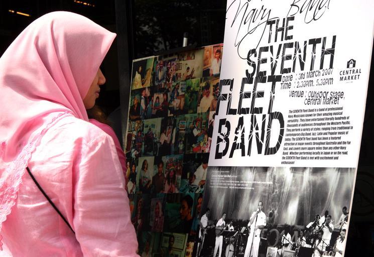 | Keywords: US Navy 070303-N-1113S-003 A local resident reads a poster advertising a 7th Fleet Band performance at the central market.jpg en KUALA LUMPUR Malaysia March 3 2007 - A local resident reads a poster advertising a 7th Fleet Band performance at the central market The band performed a variety of classic and modern rock songs at the historical market to further positive relations between the Navy and local residents Amphibious command ship USS Blue Ridge LCC 19 recently arrived in Port Klang Malaysia for a scheduled port visit U S Navy photo by Mass Communication Specialist 2nd Class Matthew Schwarz RELEASED 2007-03-03 070303-N-1113S-003 Navy http //www navy mil/view_image asp id 43658 U S Navy photo by Mass Communication Specialist 2nd Class Matthew Schwarz PD-USGov-Military-Navy Images from US Navy location Kuala Lumpur Malaysia Aboard USS Blue Ridge LCC-19 |